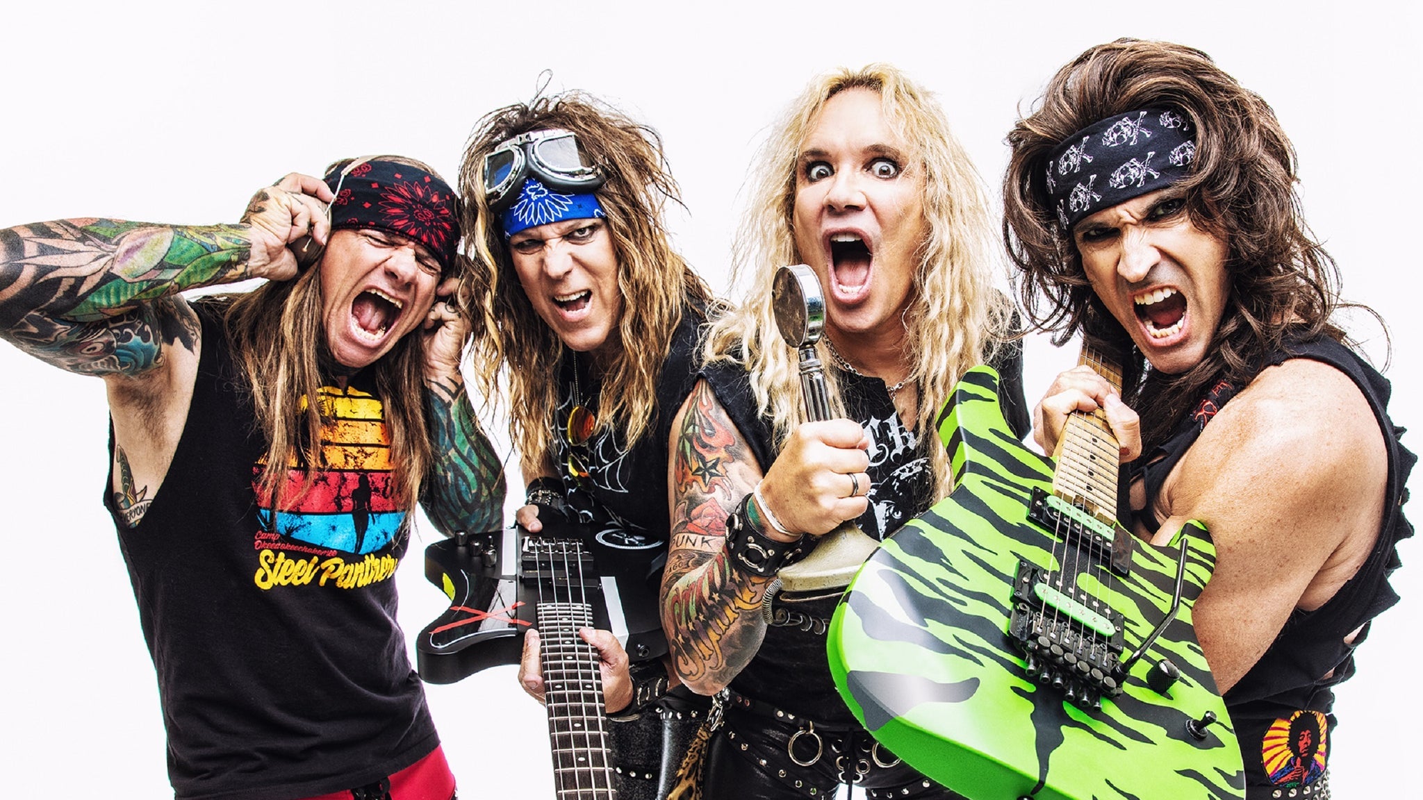SteelPanther L to R: Stix Zadinia (Drums), Spyder (Bass), Michael Starr (Vocals), Satchel (Guitars).